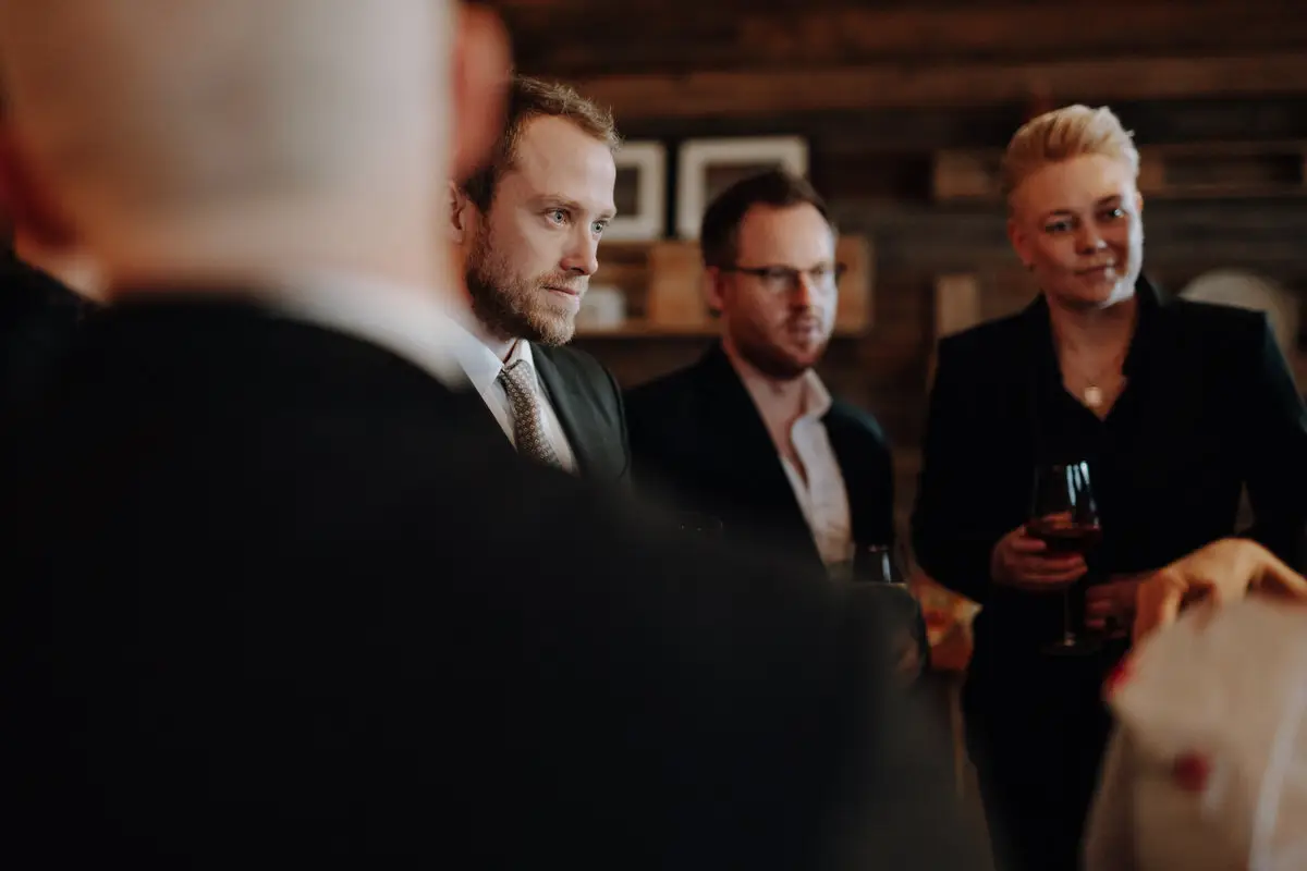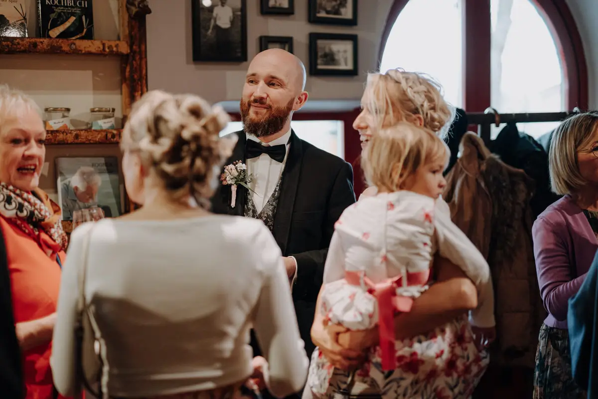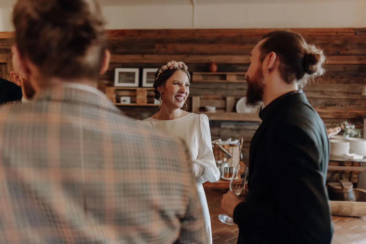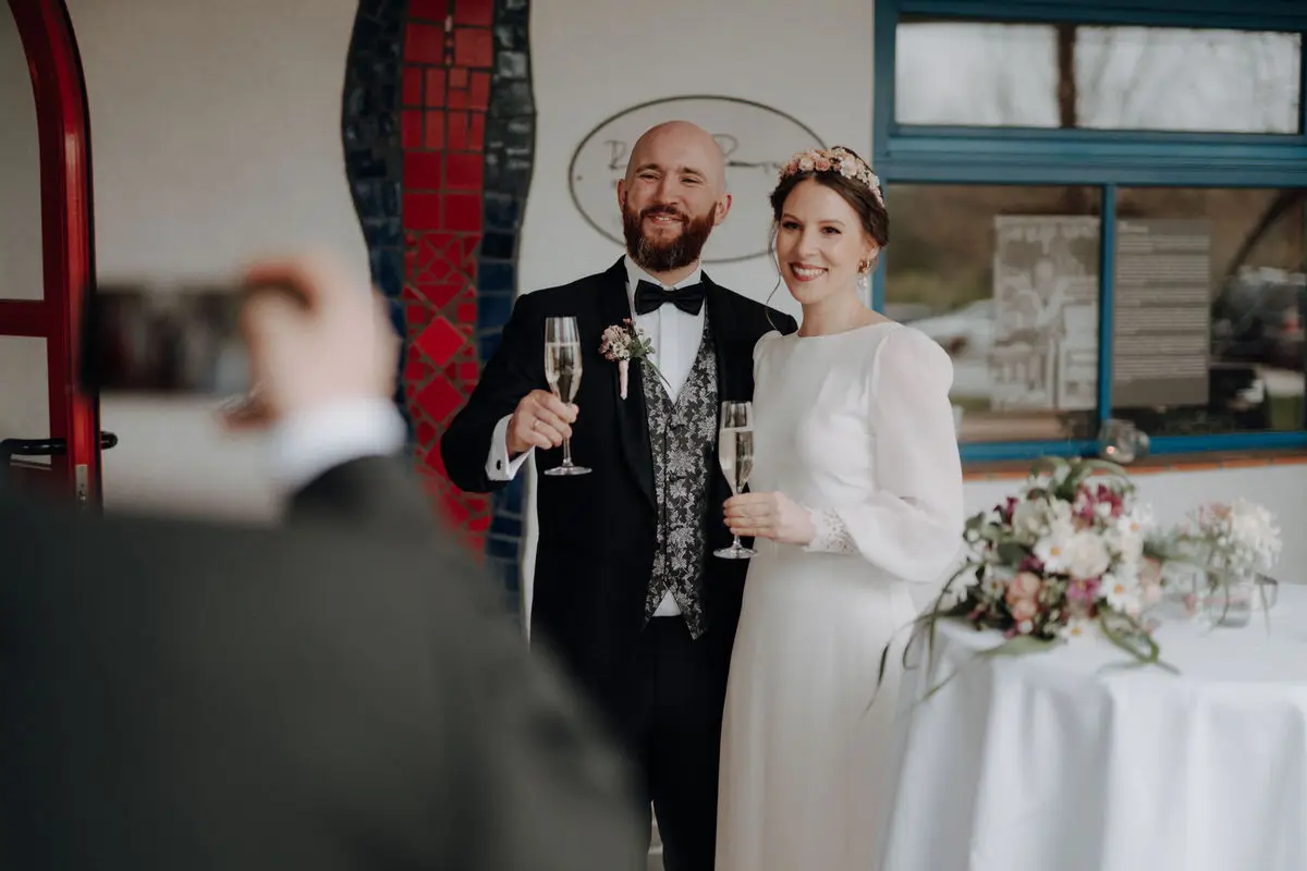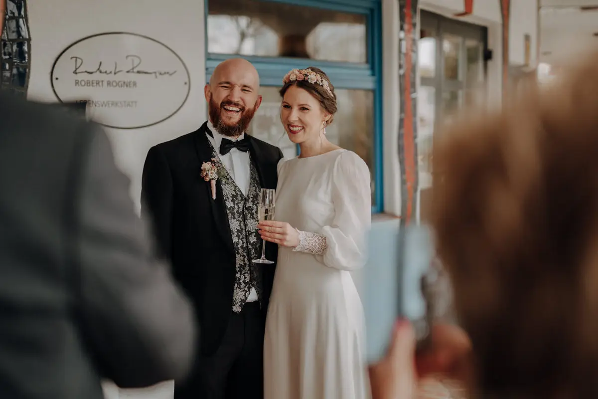 Auch abseits der Zeremonie bleibe ich zurückhaltend. Beim Empfang, während der Agape oder bei den Begegnungen mit euren Gästen lasse ich Situationen entstehen, statt sie zu steuern. Genau hier zeigen sich Persönlichkeit und Stimmung am ehrlichsten. Stylische Hochzeitsfotos entstehen für mich nicht durch Posen, sondern durch Echtheit – durch Licht, Bewegung und Vertrauen.