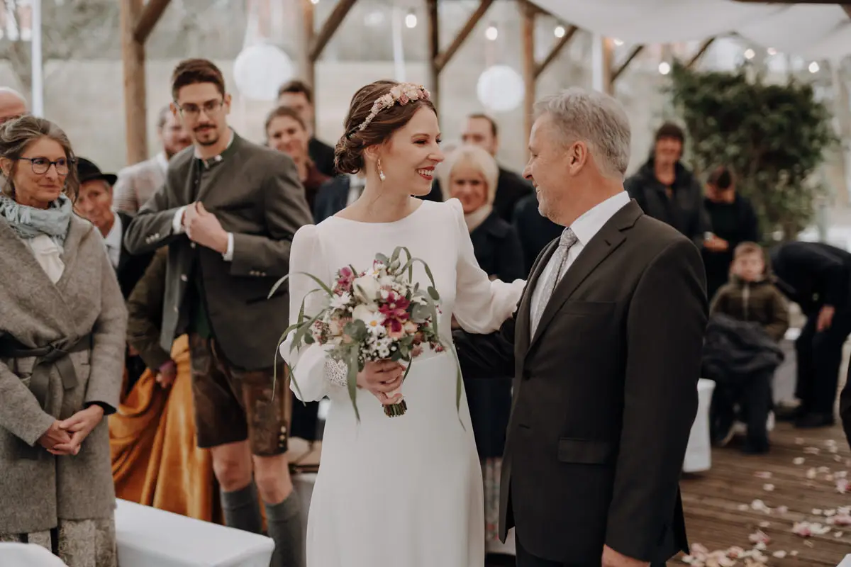 Auch Styling und Vorbereitung gehören dazu. Das Make-up und Hair-Styling der Braut wurde von Julia Lang-Bichl umgesetzt (www.julia-lang-bichl.at) und fügte sich perfekt in den natürlichen, eleganten Stil des Tages ein. Solche Details tragen dazu bei, dass Bilder zeitlos bleiben und nicht nach Trends aussehen.