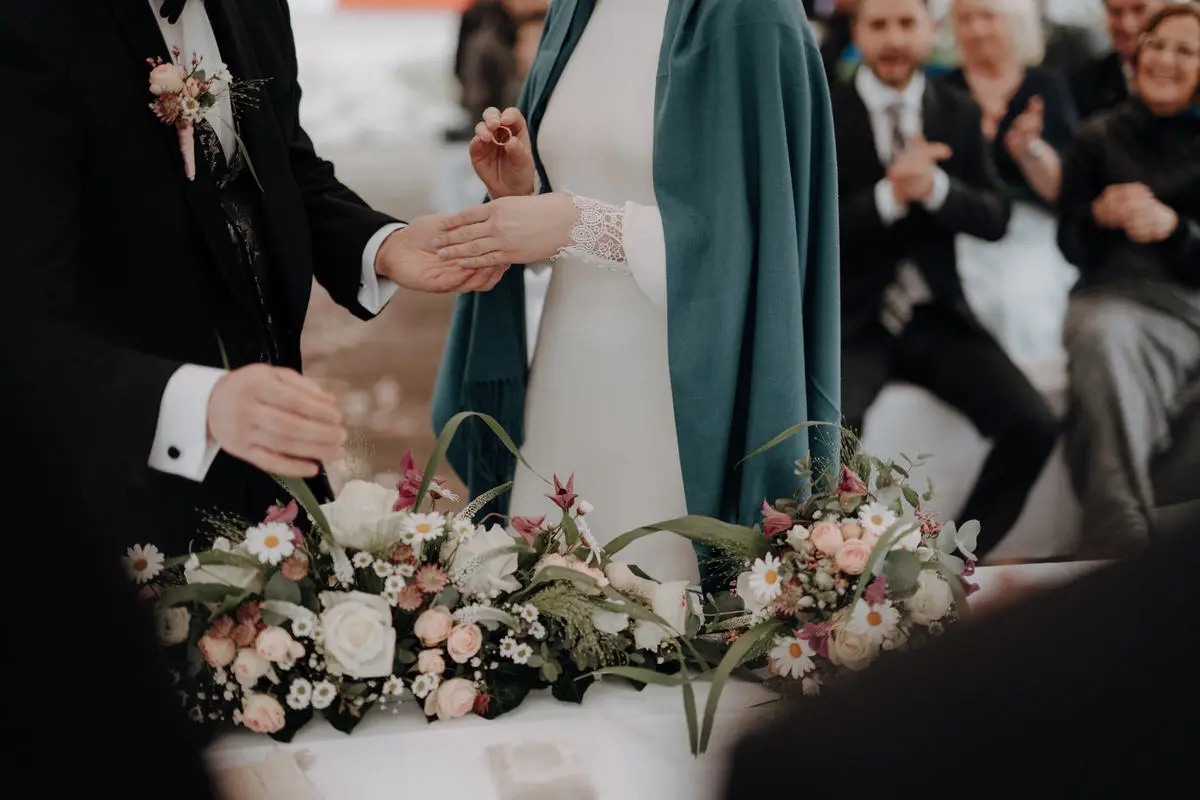 Ein wichtiger Teil meiner Arbeit sind Details. Nicht, weil sie schön sind, sondern weil sie Bedeutung tragen. Die Hände mit den Eheringen, ein gedeckter Tisch vor dem Einzug der Gäste, ein Lachen während der Agape. Diese Elemente verbinden die großen Momente miteinander und machen aus einzelnen Bildern eine runde Geschichte.