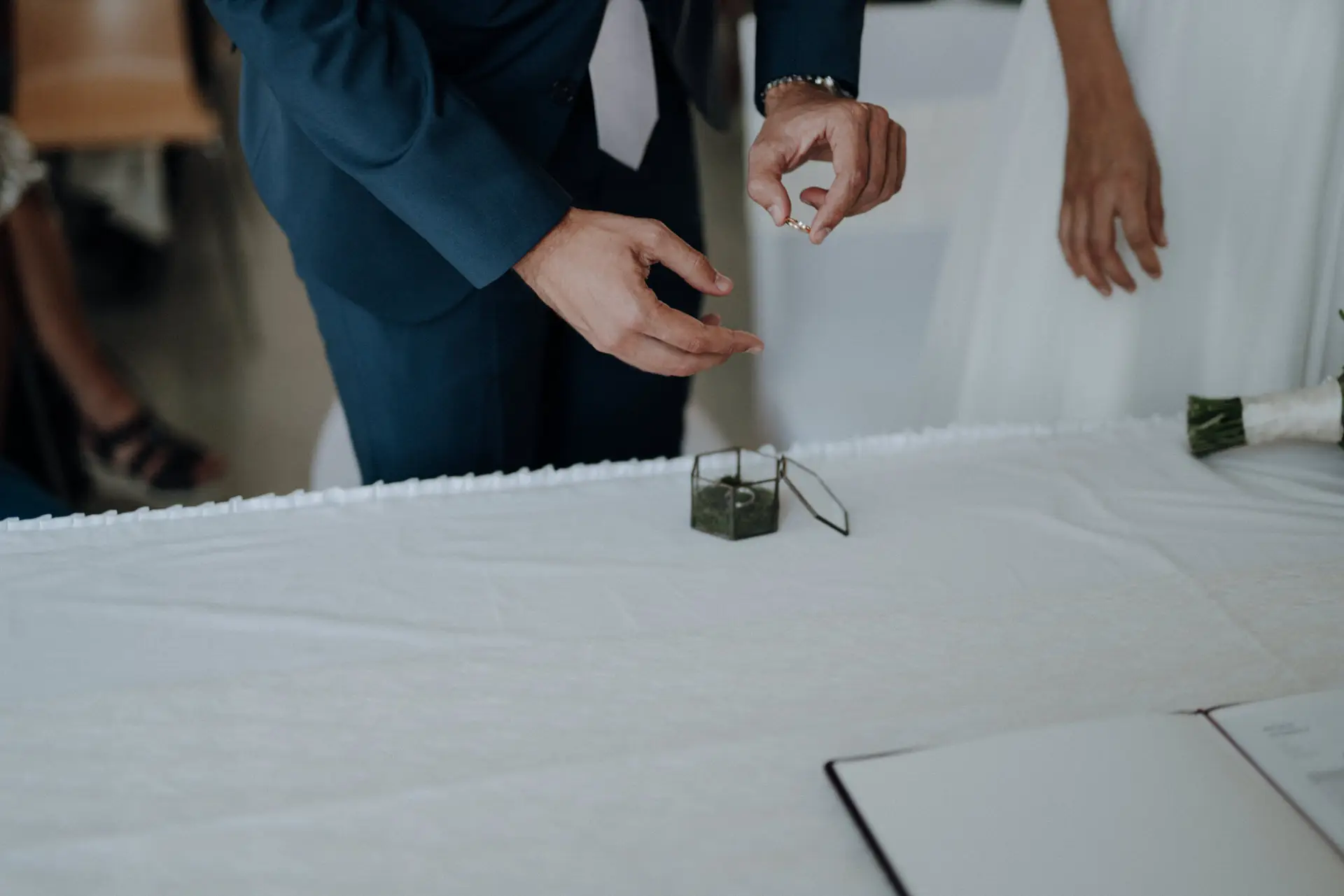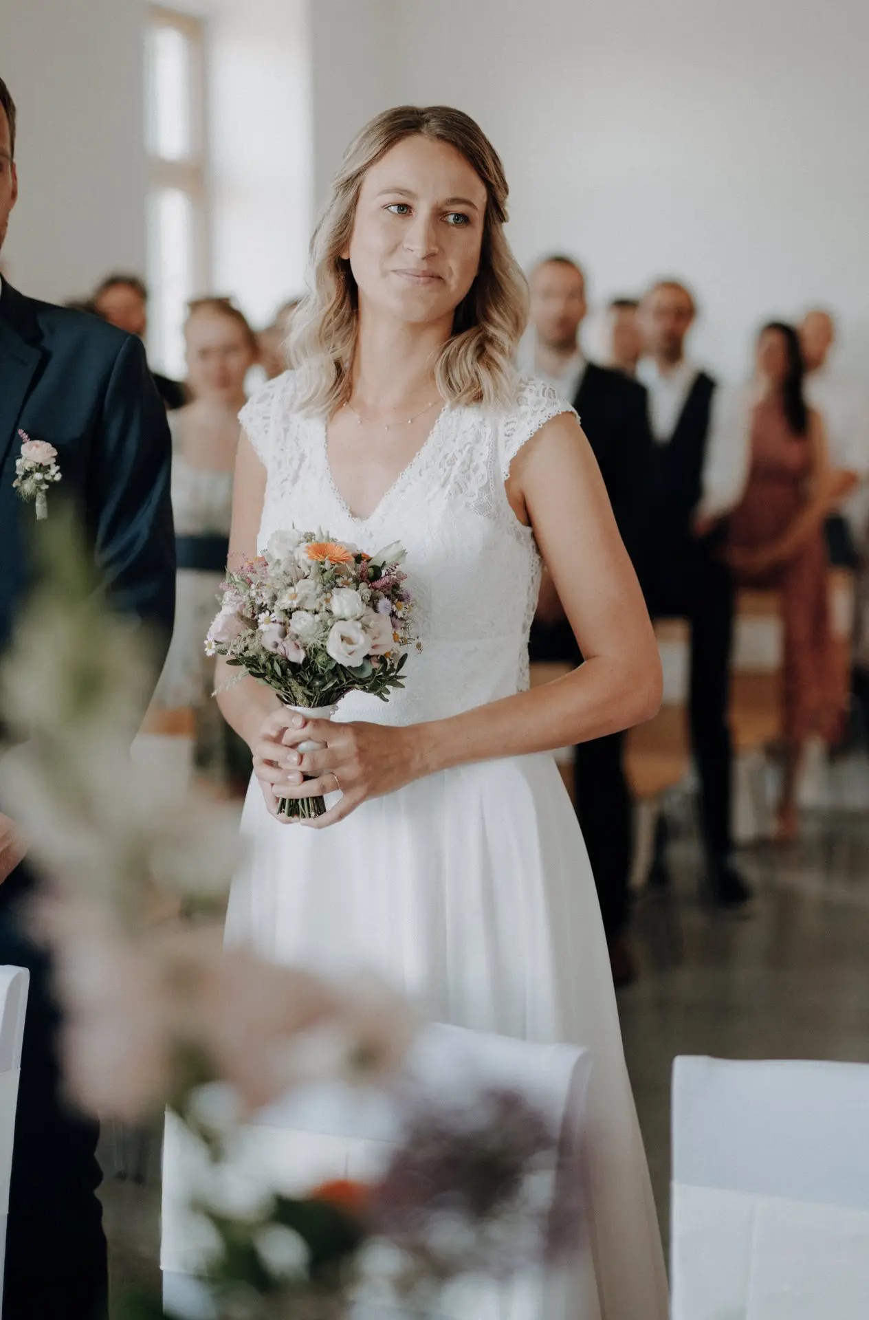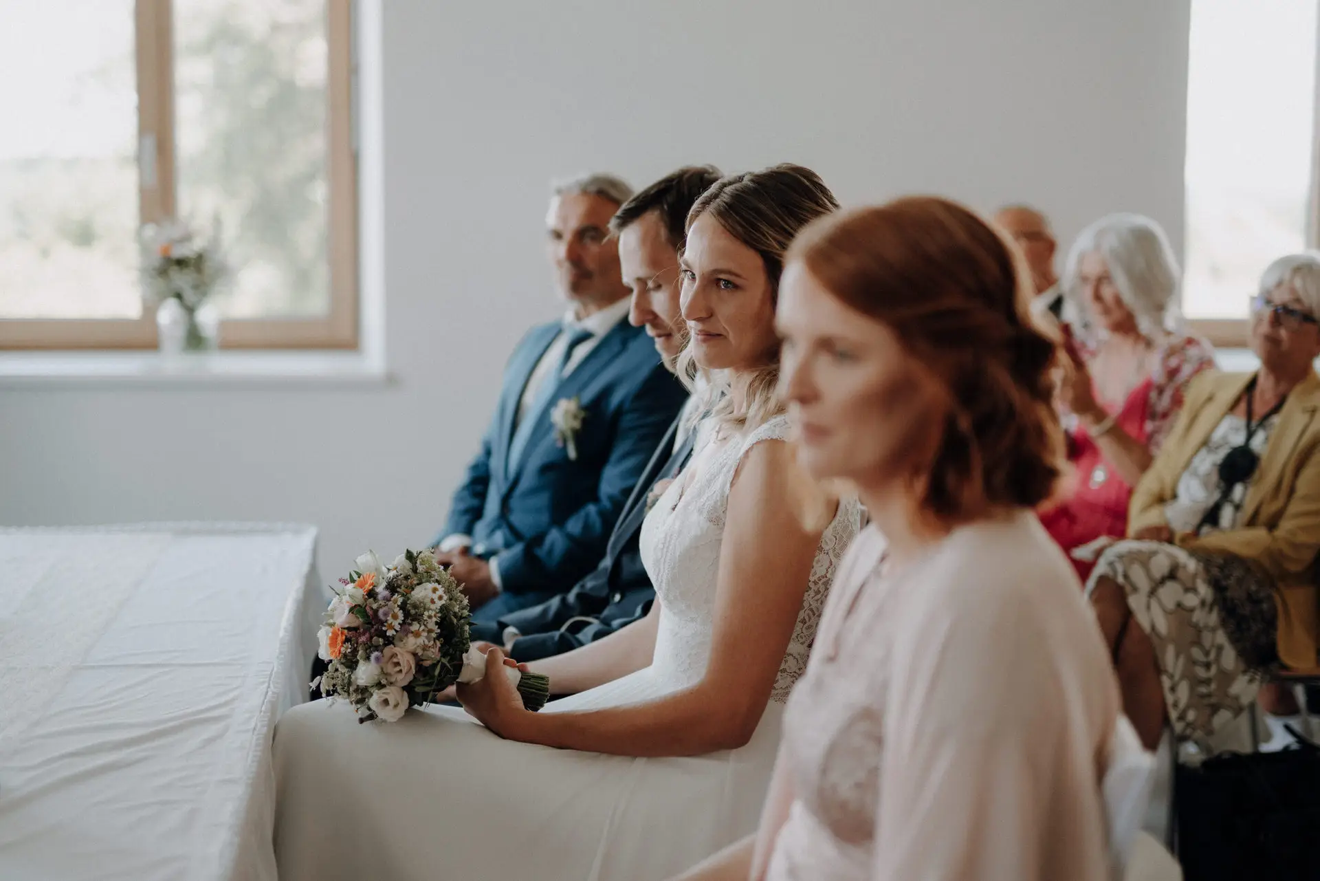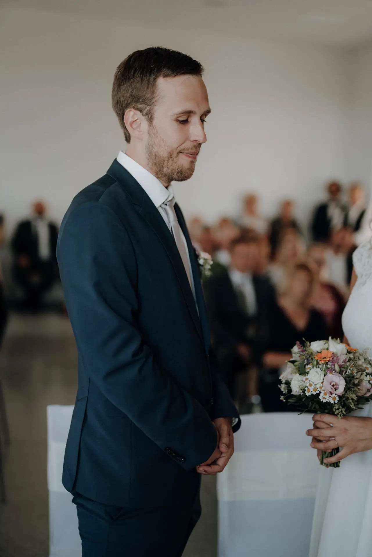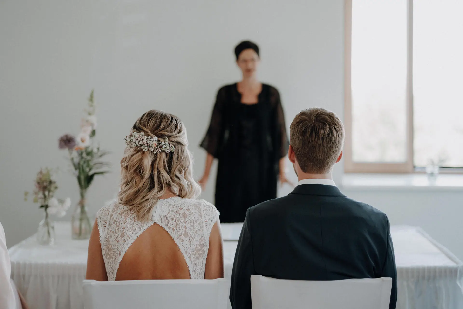 Die standesamtliche Trauung war schlicht und genau dadurch sehr emotional. Katja wurde von ihrem Vater begleitet, Philip wartete bereits. Für mich ist es in solchen Momenten entscheidend, Raum zu lassen. Ich greife nicht ein, gebe keine Anweisungen und halte Abstand. Meine Aufgabe ist es, präsent zu sein, ohne sichtbar zu werden.