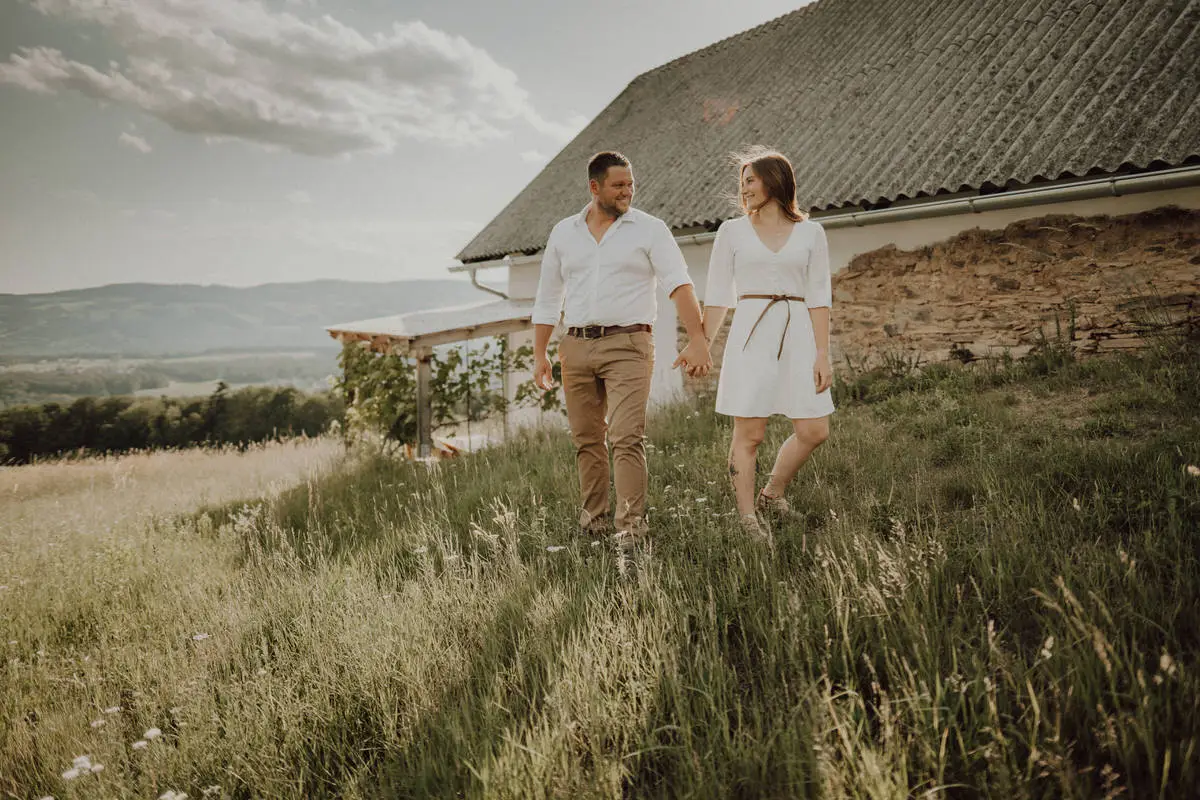 Bei Kathi und Robert war das deutlich spürbar. Zwischen Bäumen, Wiesen und offenem Licht entsteht automatisch Nähe. Kleine Gesten wirken stärker, weil nichts ablenkt. Ein Blick, eine Hand am Rücken, ein kurzer Moment des Innehaltens – genau daraus entstehen Verlobungsfotos in der Natur in der Steiermark, die auch Jahre später noch stimmig sind.